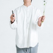 一見なんともないシンプルなものなんですけど実は緻密にデザインされたメイドインジャパンなのです。品質/形/シルエット/雰囲気/プライス...絶妙なバランスのとれたギャランティアイテム。こちらの素材は綿100%なんですが、一見麻みたいなテクスチャーを持っています。とても上品で高級感のあるコットン生地。ポイントは一番下のフロントボタンがループになっているところ。ループをかけることにより、上前/下前があらわになり、シャツジャケットのようにも見えます。ドレッシーにインナーシャツとして、また、シャツジャケットとして軽めのアウターにもご使用頂けます。 ※こちらのアイテムは受注生産となります。オーダー頂きましてから1ヶ月以内にお届けとなります。